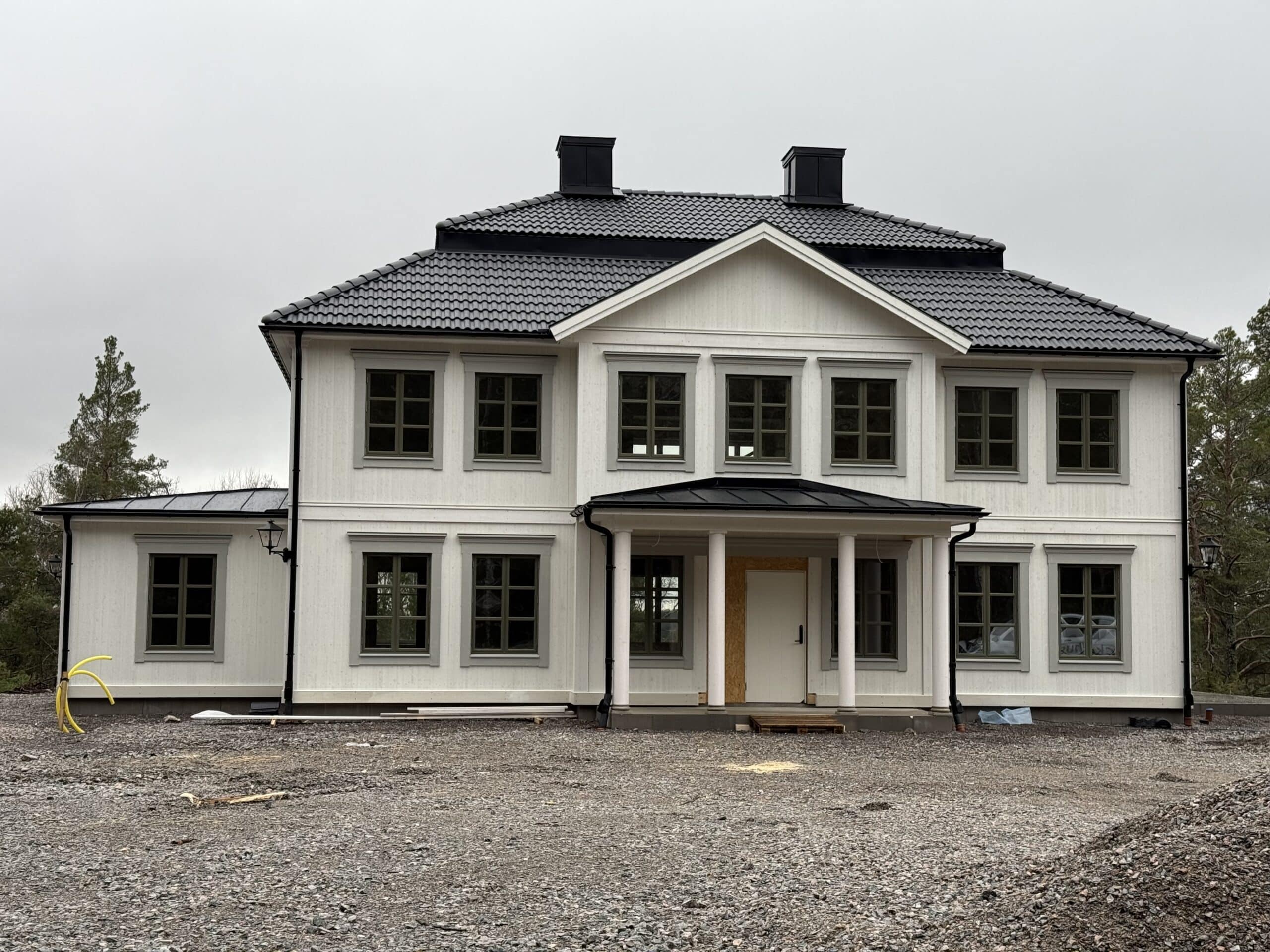 Sanda Herrgård är ett generöst och stilfullt hem med tydlig herrgårdskänsla. Den stående limträfasaden, vackra midjebrädor och traditionella foder skapar ett tidlöst och elegant uttryck. Invändigt möts du av generösa takhöjder, klassiska pardörrar och väl tilltagna ytor som passar lika bra för vardagsliv som för större middagar och festliga tillfällen. Ett hus som kombinerar klassisk arkitektur med moderna krav på funktion och komfort.