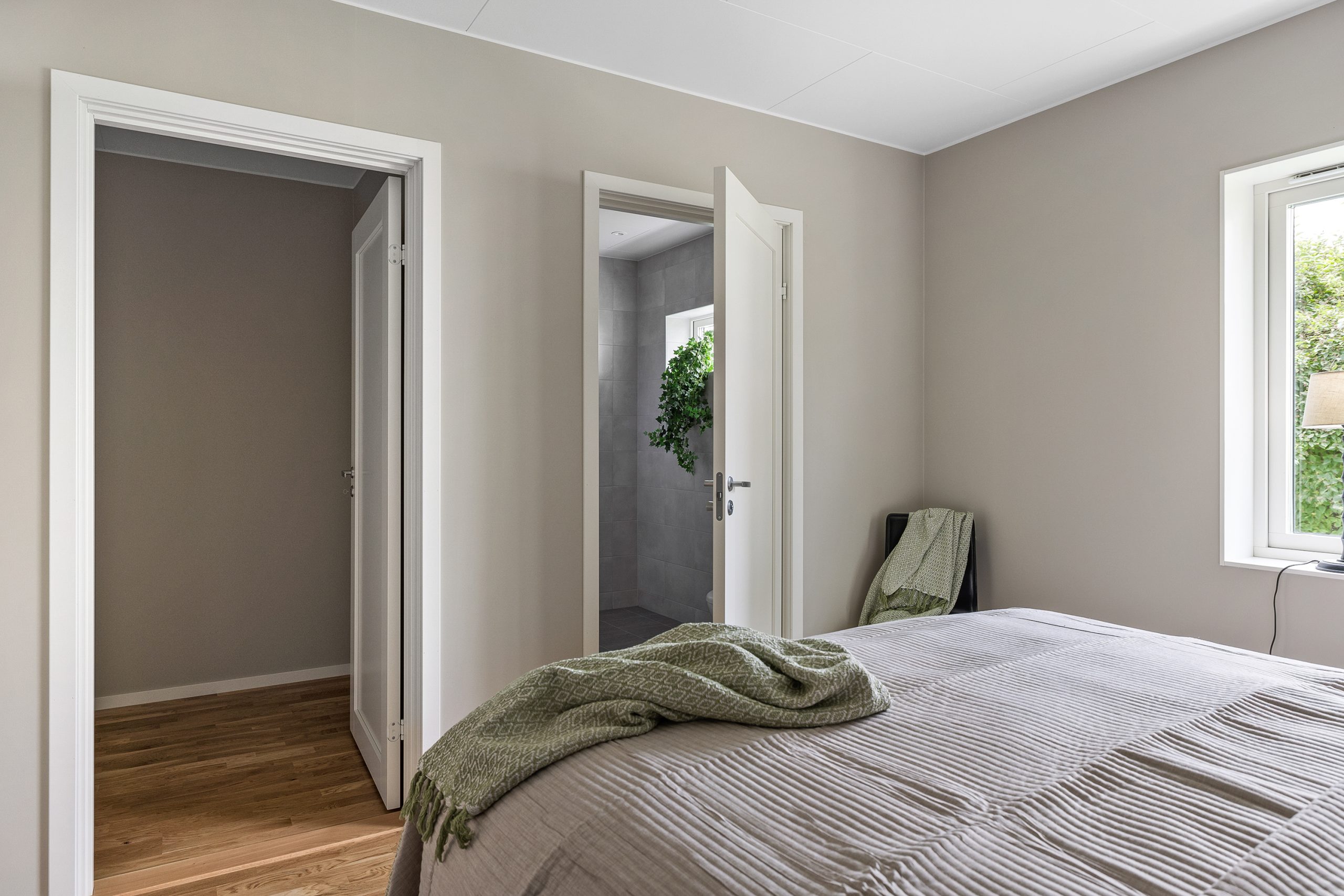 I det magnifika master sovrummet möts bekvämlighet och lyx. Här finns inte bara en generös sovyta utan även en privat klädkammare och ett eget badrum. Detta ger en avskild plats för avkoppling och välbefinnande, där man kan dra sig tillbaka och njuta av lugnet efter en lång dag.
