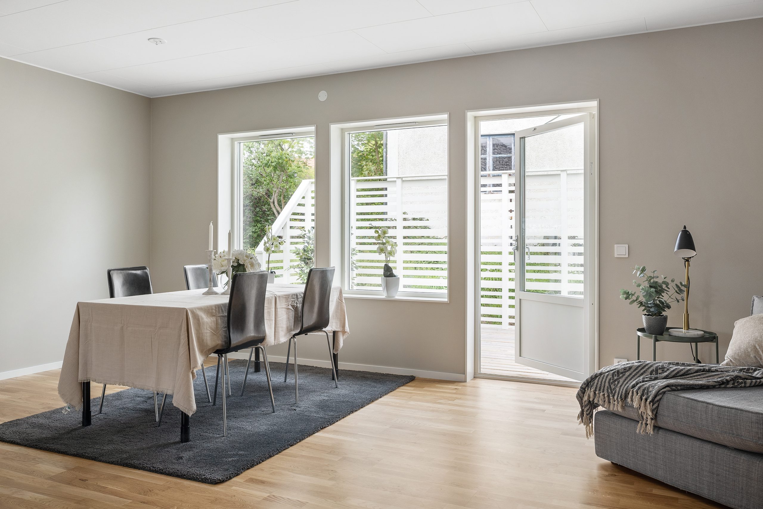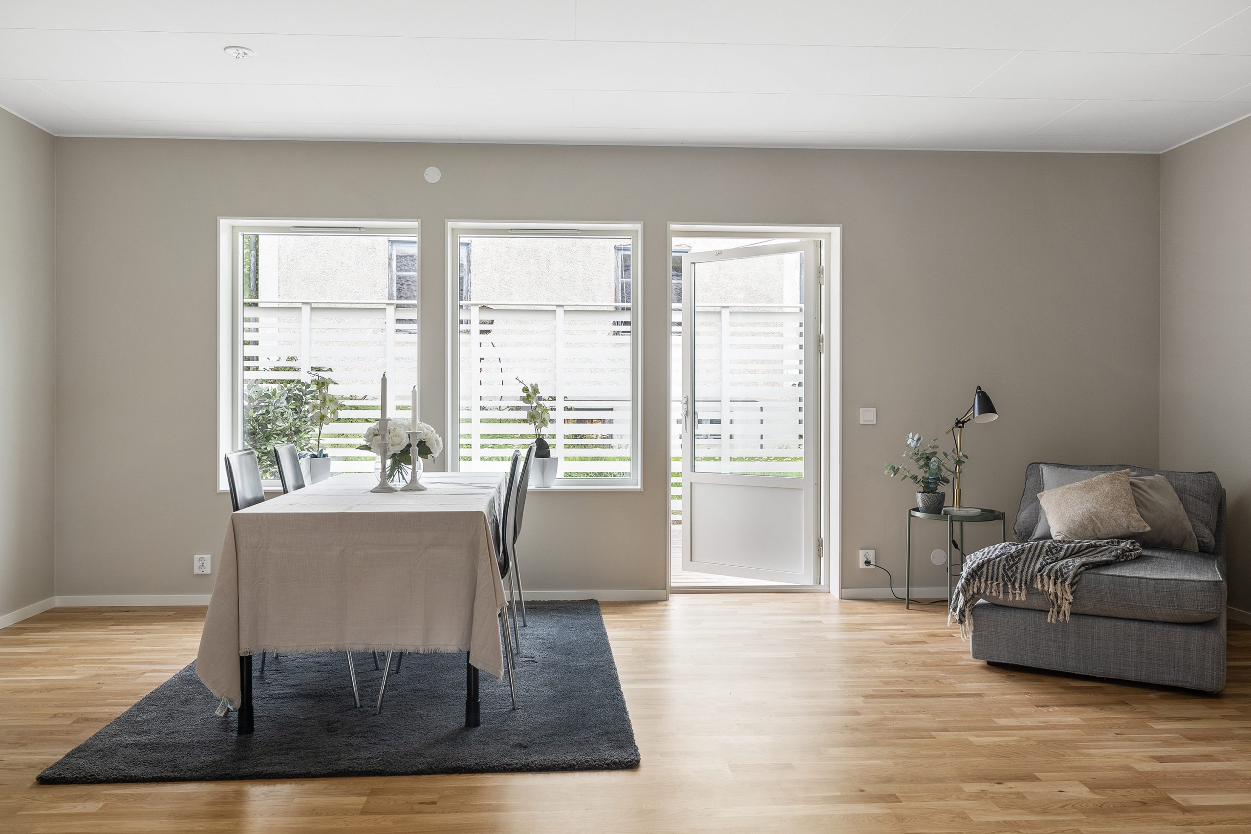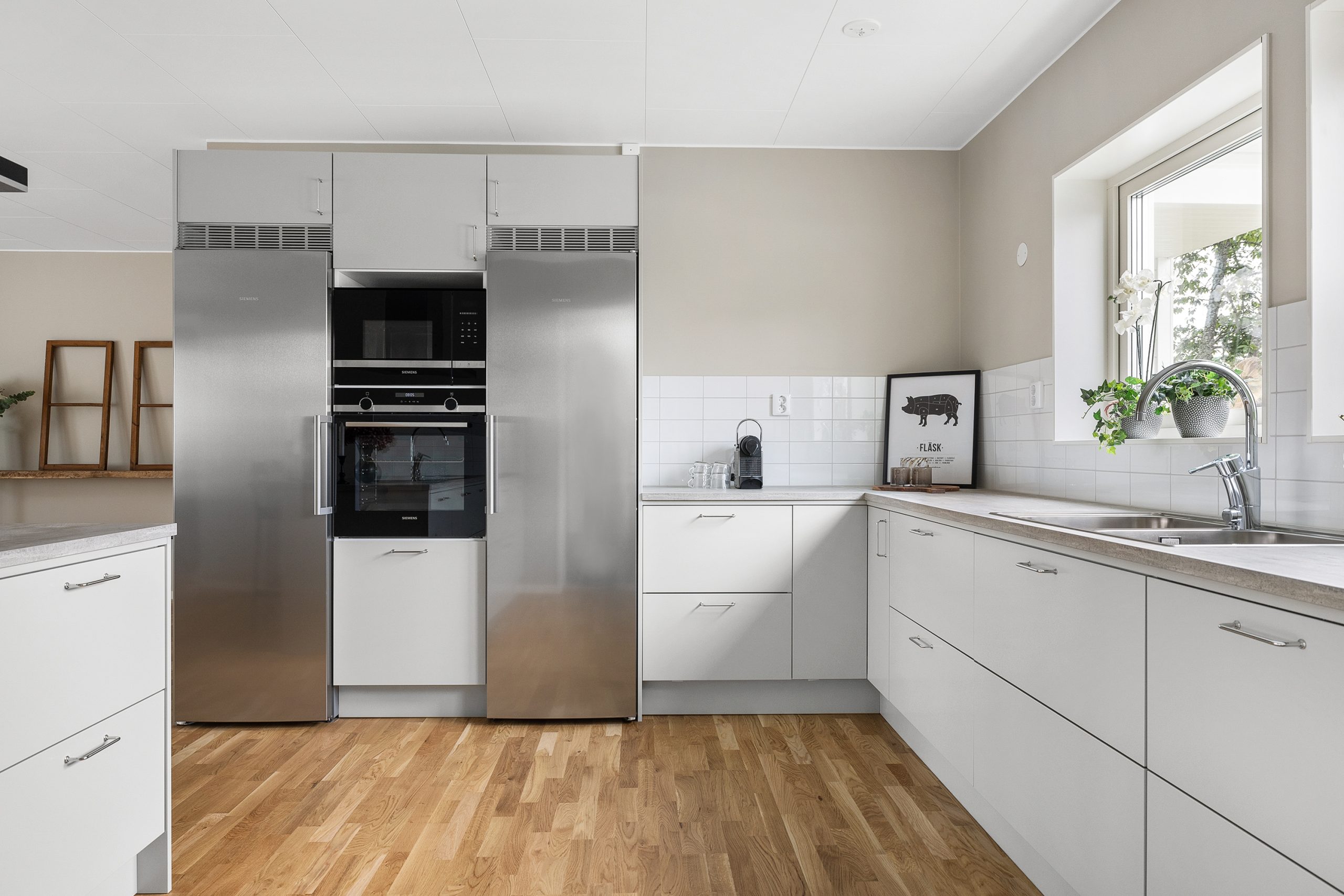I det charmiga huset Tillinge möts boende av en ombonad atmosfär där gemenskap och privatliv smälter samman på ett harmoniskt sätt. Här är köket och vardagsrummet hjärtat av hemmet, en plats där familj och vänner samlas för att dela måltider och skapa minnen tillsammans. Det öppna konceptet ger en känsla av rymd och samtidigt en närhet som främjar gemenskap. Här erbjuds gott om förvaringsmöjligheter.