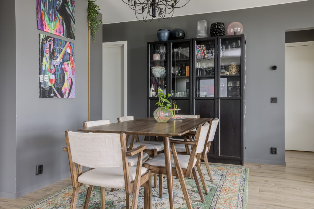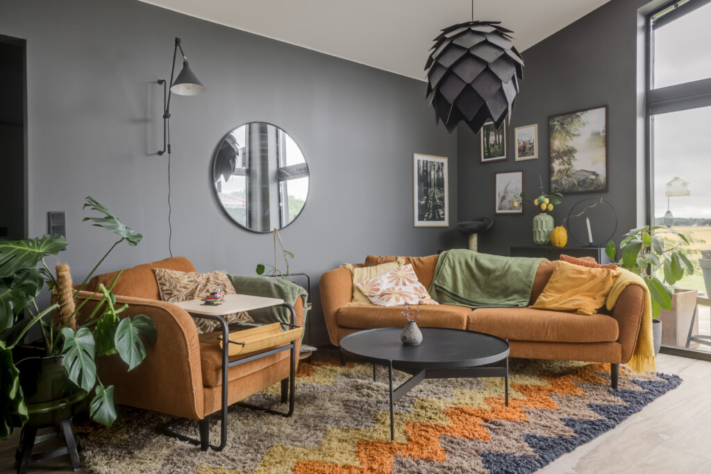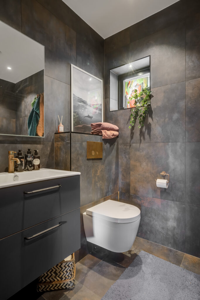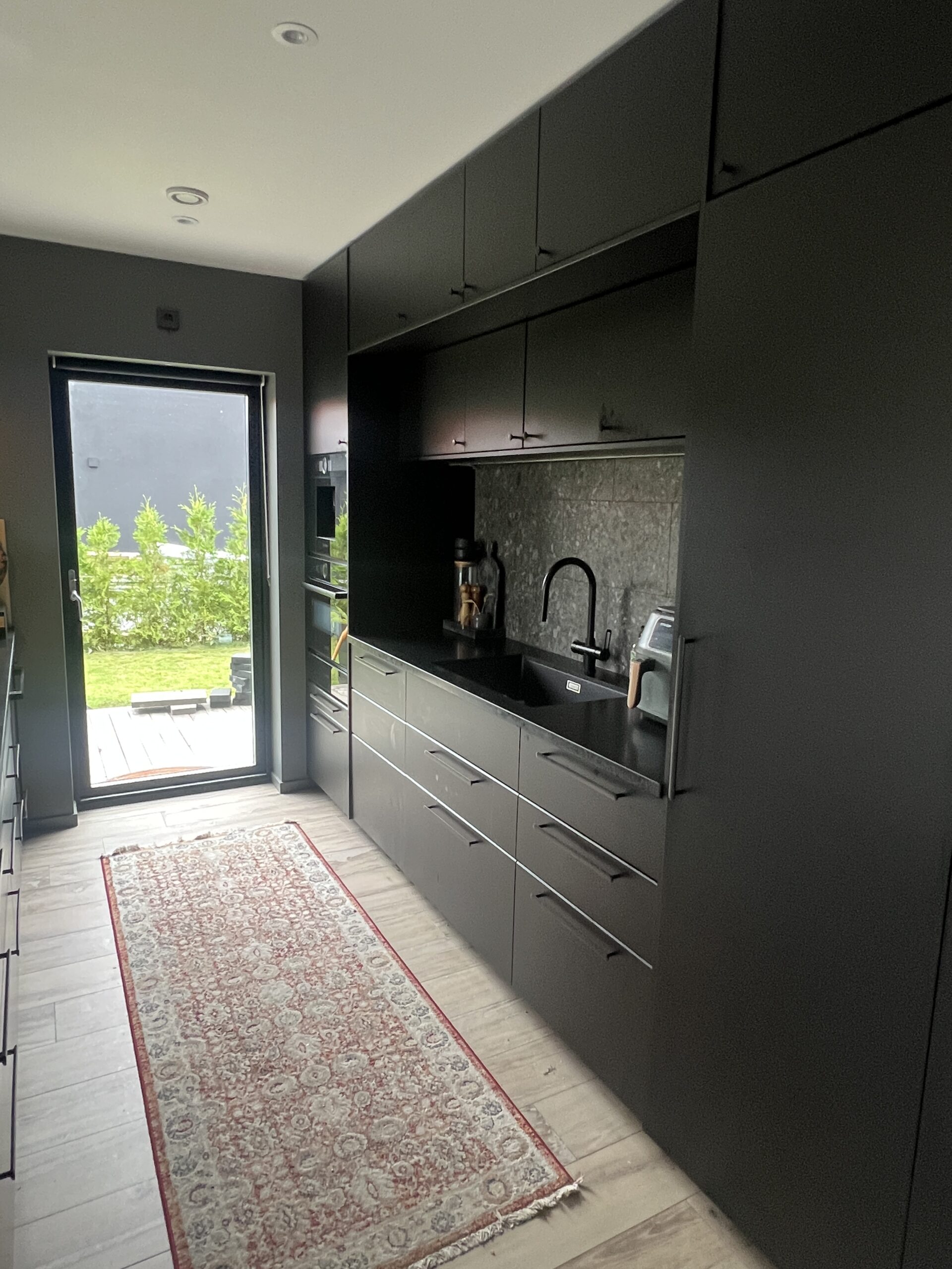 När det gäller stil och känsla gick Malin och Joakim sin egen väg. ”Vi fastnade för svart och mörka färger, medan många andra kanske trivs bättre i ljusa hem. Men vi gillar kontraster och det känns rätt för oss. Inspirationen hämtade vi mycket från sociala medier, men också från våra tidigare hem och andras idéer.”